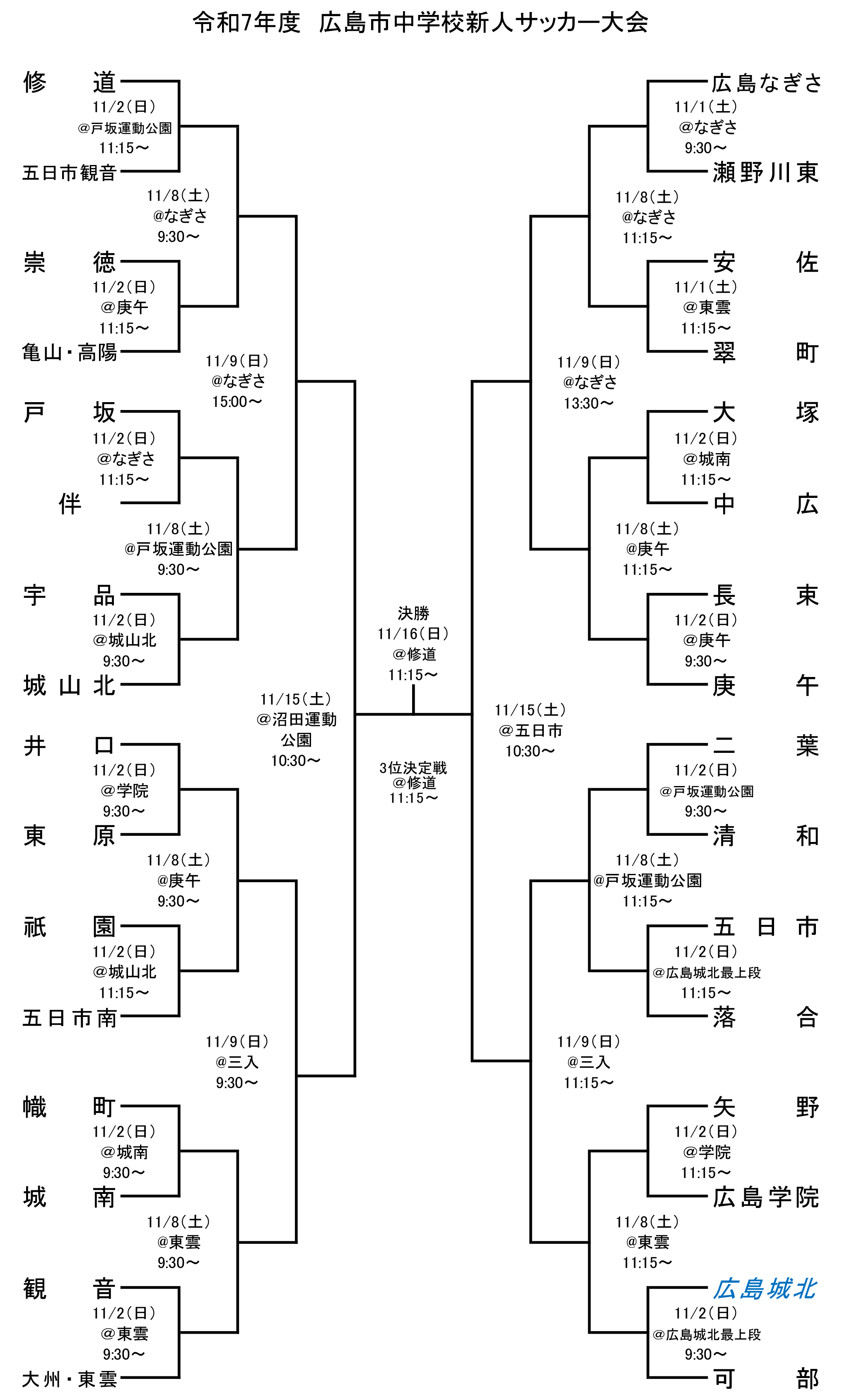 11月1日(土)から下記の通り広島市中学校新人サッカー大会が始まります。