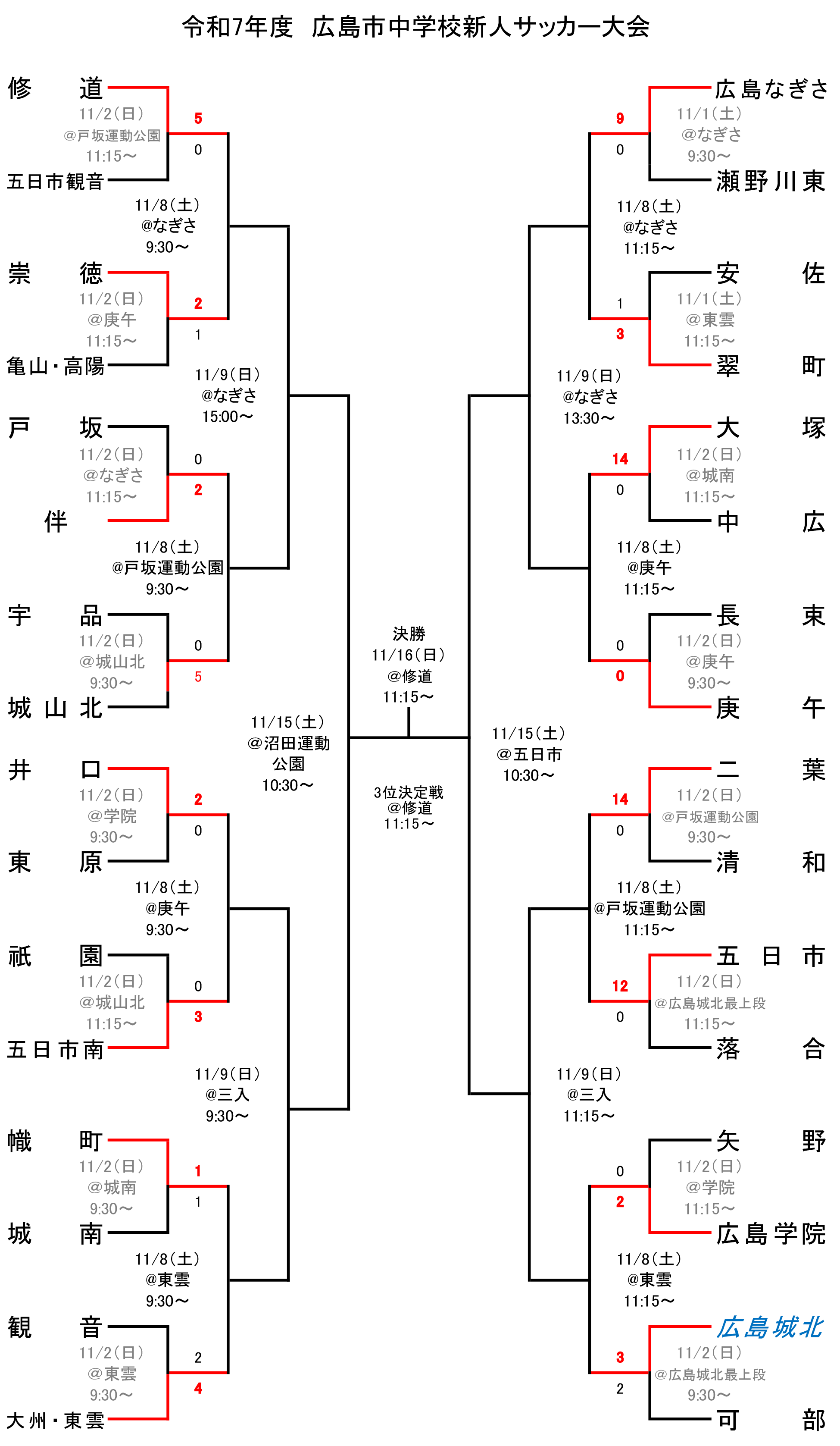 細心の注意を払い結果を掲載しておりますが、間違いなどがある可能性があります。 今一度お確かめの上、会場へ足を運んで熱い声援をお送りください! これからも広島城北サッカー部公式サイトならびに広島城北中学校サッカー部を宜しくお願い致します。